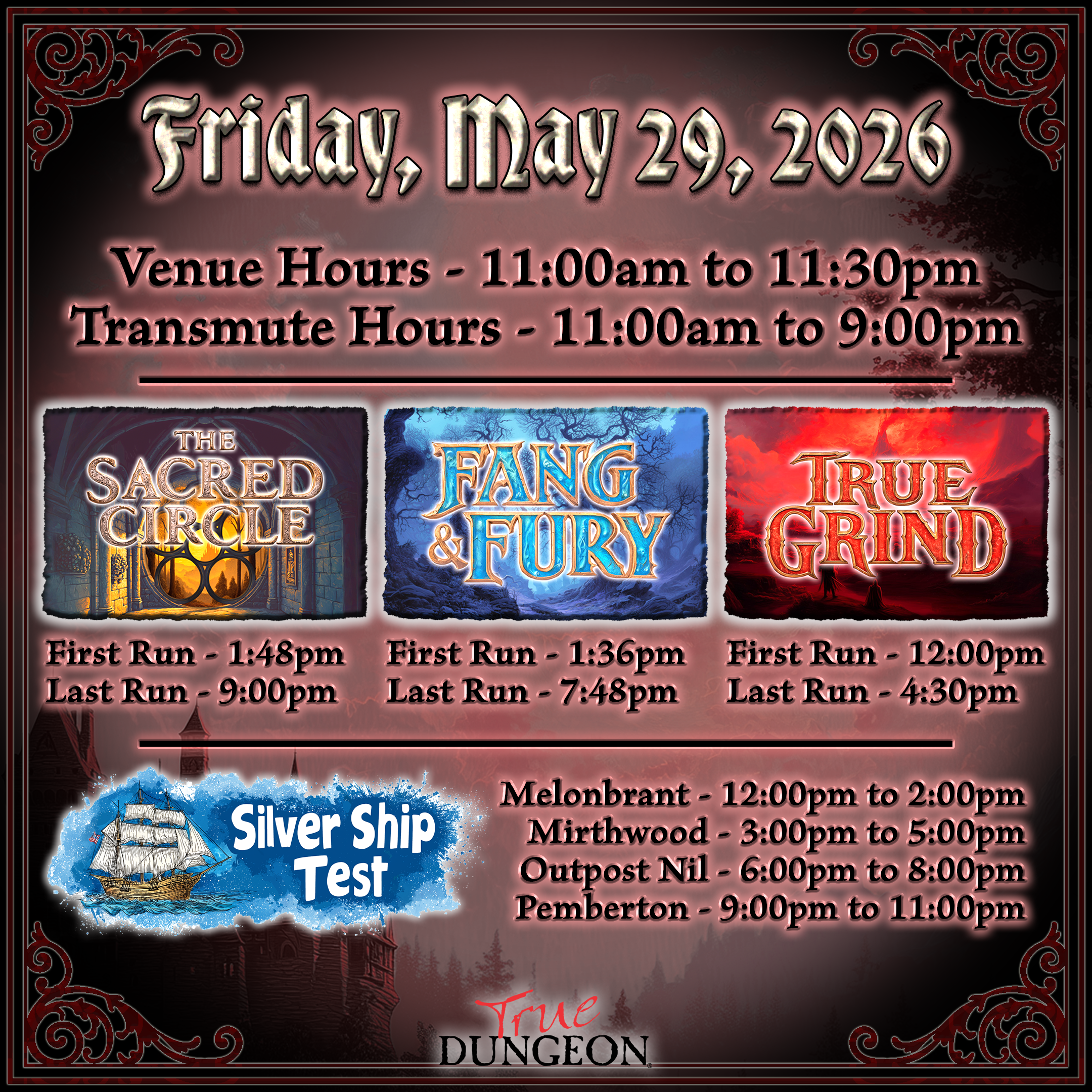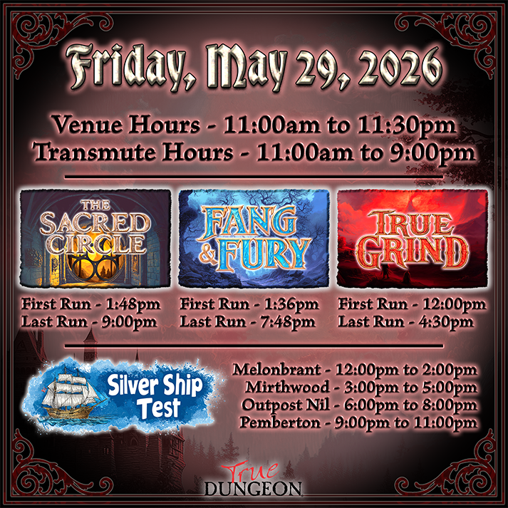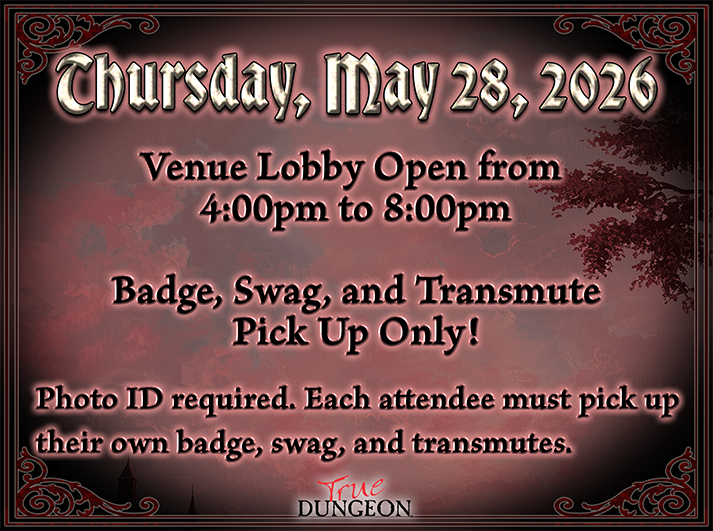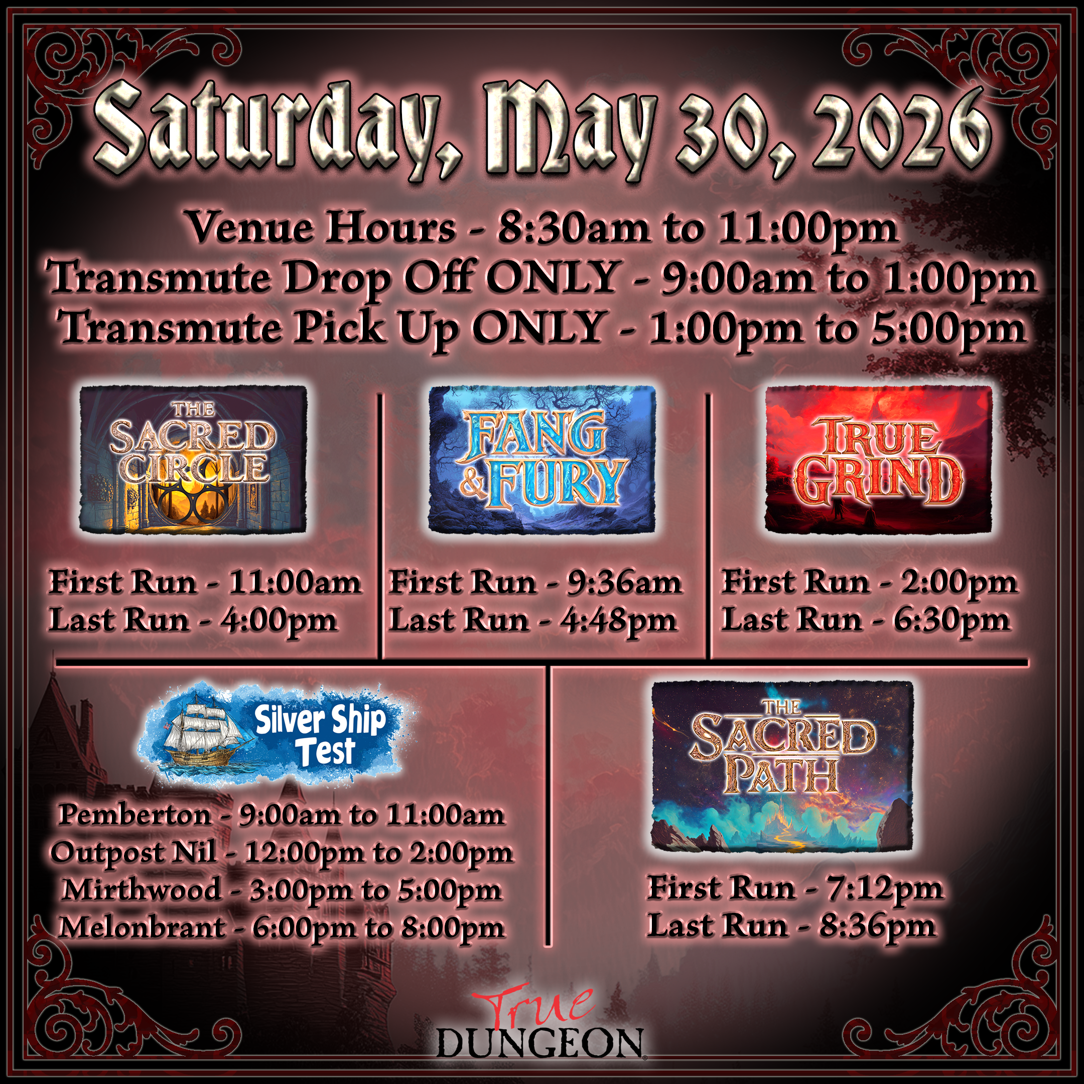 After five years Ring Con is finally here! Ring Con is a two-day True Dungeon gathering filled with immersive runs, quick-hit challenges, and awesome time with the TD community. Join us May 29–30, 2026 at the Williamson County Pavilion (Marion, IL) for adventures, challenges and fun!
