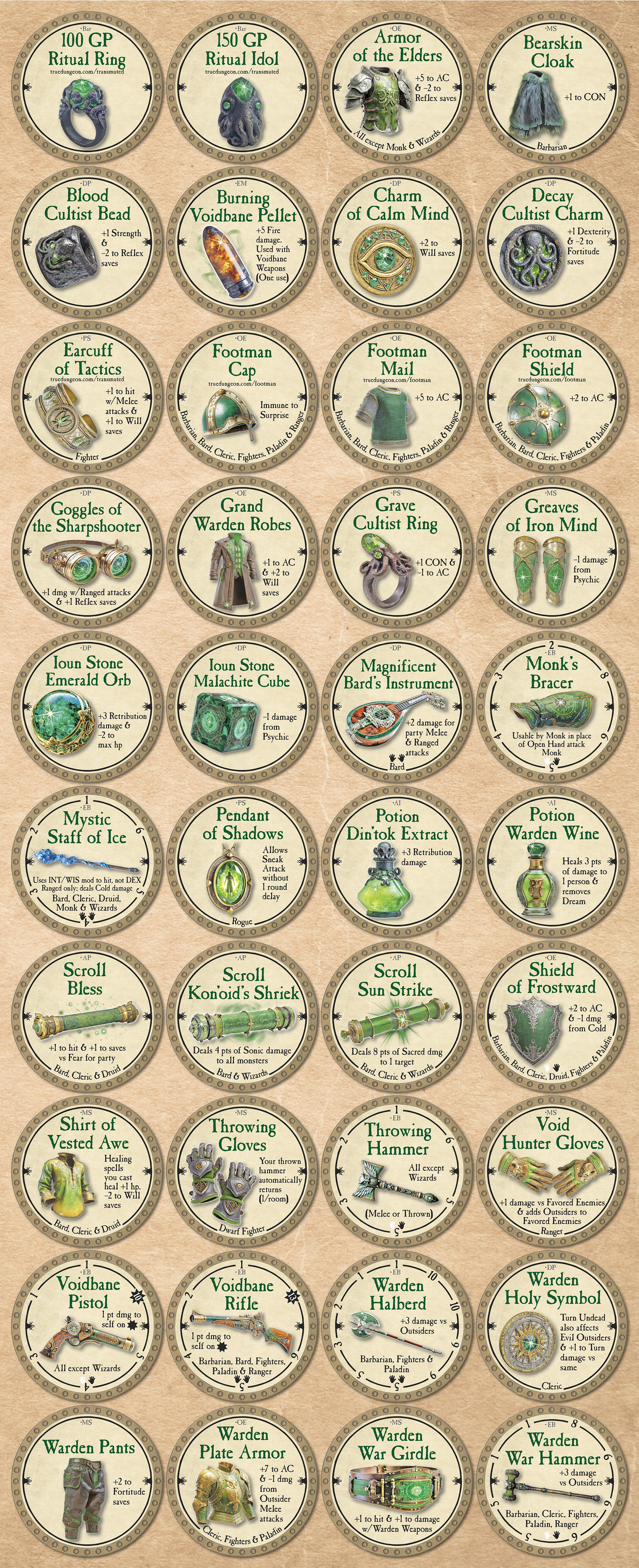 I made a lot of cosmetic tweaks to these tokens, but most won't probably be all that noticeable. I did replace the art on the Throwing Gloves and the Potion. I felt that they were sub-par. I like the new art better.